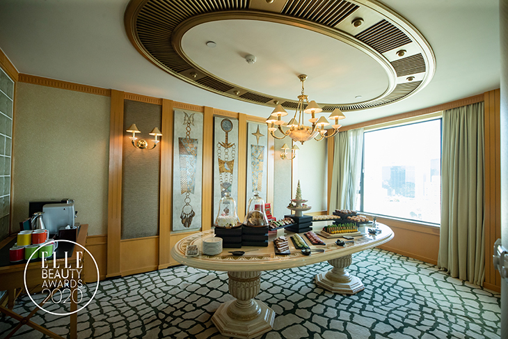 Đây là các sản phẩm nằm trong danh sách đề cử được trưng bày trên bàn. Các Beauty Blogger được thoải mái thử các sản phẩm tốt nhất trong danh sách đề cử của ELLE Beauty Awards 2020 trước khi buổi thảo luận bắt đầu.