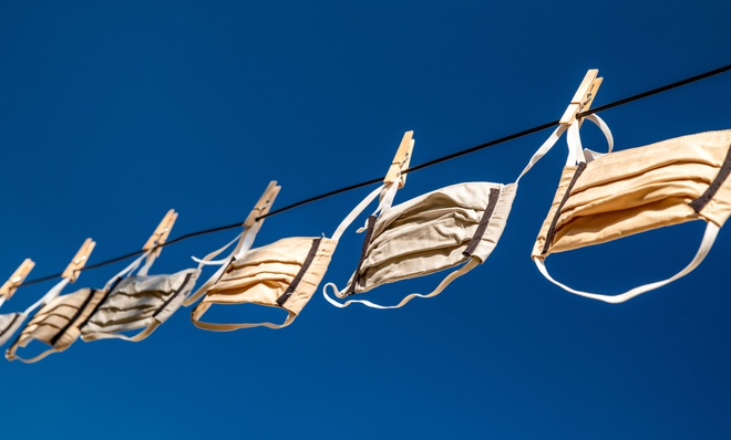 Khẩu trang cần được phơi dưới ánh nắng để diệt sạch virus. Ảnh: Vogue.