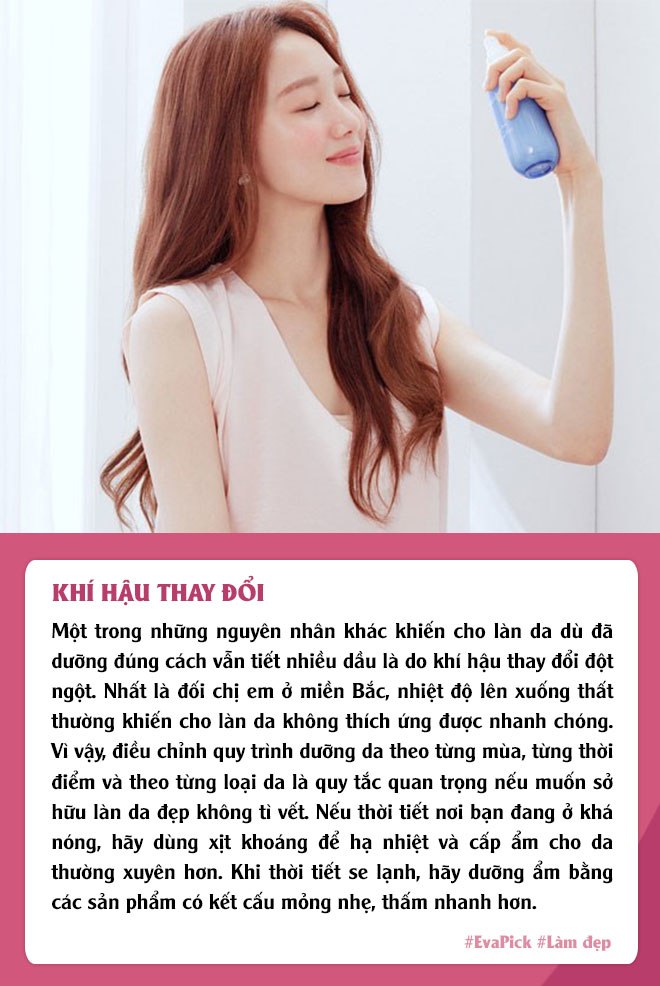 Không phải chỉ riêng việc dưỡng da sai cách mới làm cho dầu đổ nhiều hơn mức bình thường, bạn có thể gặp phải tình trạng này khi thay đổi môi trường sống và thói quen sinh hoạt.